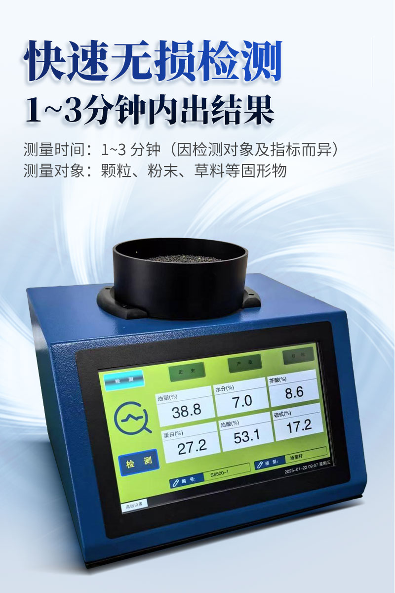 近红外光谱分析仪,是针对原粮、食品、饲料等行业开发的** 检测设备,可无损、快速、准确地检测样本的水分、脂肪、蛋白质等多种指标。