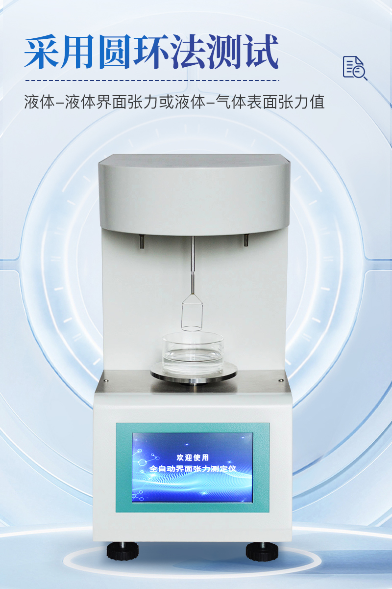 产品介绍按照国家标准GB/T6541《石油产品油对水界面张力测定法(圆环法)》所规定的要求设计制造仪器特点仪器采用等一点标定,简单方便,保证测量精度;自动温度补偿;动态张力曲线显示;时钟功能,掉电存储功能;高清晰彩色触摸屏,操作更加方便;技术参数测量范围:2-200mN/m准