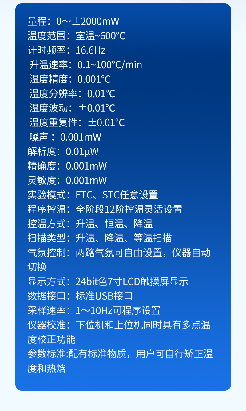 3、采用进口高灵敏度传感器,有效提高了DSC信号的灵敏度和准确率。