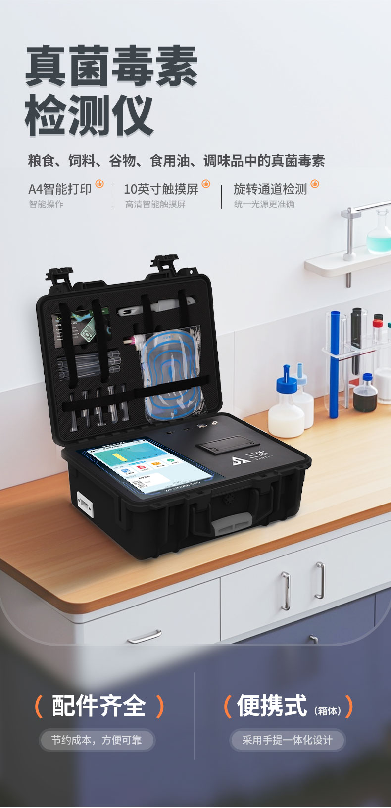 365上市公司官网生产的真菌毒素检测仪应用竞争抑制免疫层析的技术原理,通过就是通过待检测物与抗体结合的方法,分析待检样品中真菌毒素残留。可快速检测粮食、饲料、谷物、食用油、调味品中如玉米、大米、小麦、大麦、糙米、麸皮、稻谷、豆粕、米糠、饲料中的黄曲霉毒素B1、M1、总量,玉米赤霉烯酮、呕吐毒素、T2