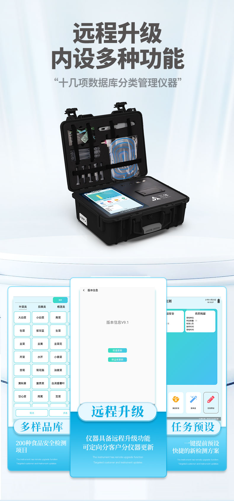 13、仪器具备远程升级功能,可定向分客户分仪器更新,开机后自动更新,并可持续性免费更新系统版本,无需像传统产品返厂更新,节省时间及人力成本并避免了物流运输返厂升级导致设备损坏的潜在风险。