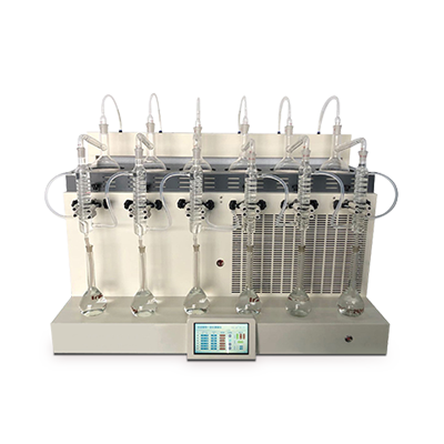 一体化智能蒸馏仪是根据实验室蒸馏预处理操作规程,集恒温加热、蒸馏终点自动控制、冷却水循环于一体的新型智能蒸馏处理装置。解决了传统蒸馏装置操作繁杂不便、资源浪费等问题,该仪器实现了自动防倒吸、加热均匀、防暴沸、智能终点控制等功能,使用方便,节能环保。经过计量认证实验室蒸馏回收率比对验证,结果准确可靠,回收率达95%以上。