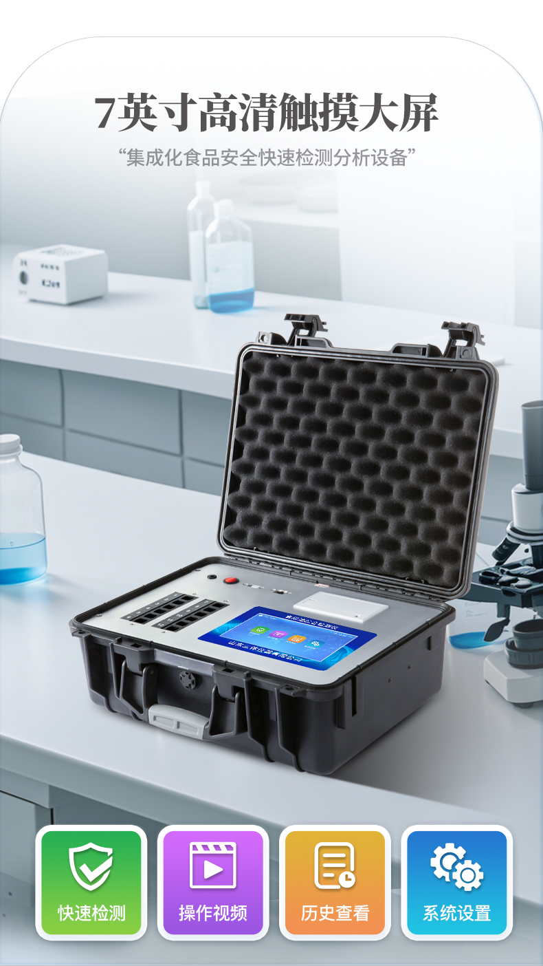 4、一体化便携式快检设备,满足现场及流动检测使用需求。
