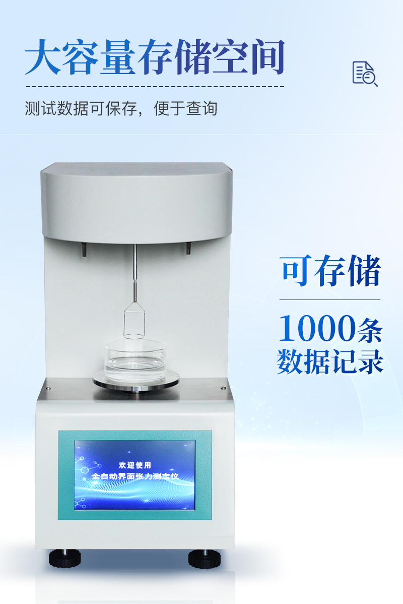 产品介绍按照国家标准GB/T6541《石油产品油对水界面张力测定法(圆环法)》所规定的要求设计制造仪器特点仪器采用等一点标定,简单方便,保证测量精度;自动温度补偿;动态张力曲线显示;时钟功能,掉电存储功能;高清晰彩色触摸屏,操作更加方便;技术参数测量范围:2-200mN/m准