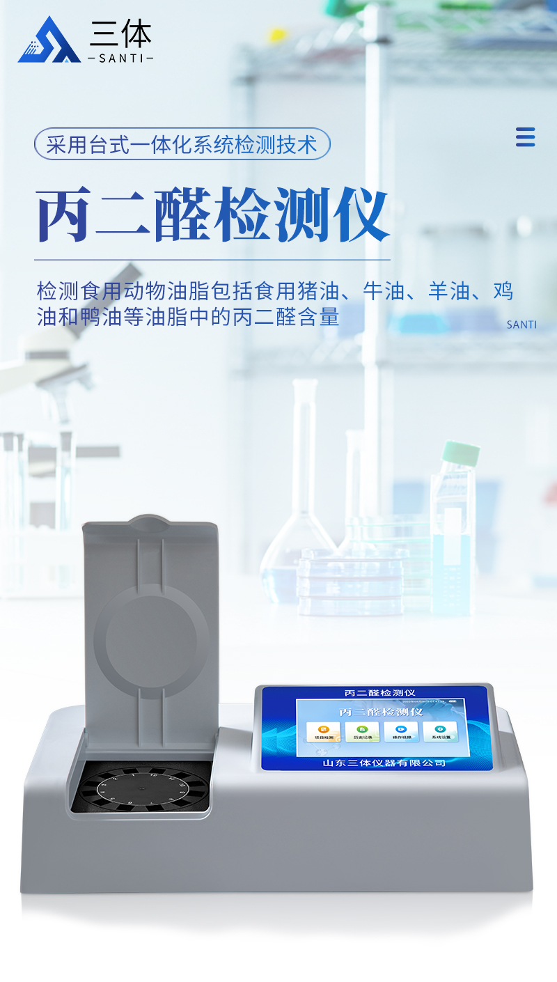 产品用途:365上市公司官网生产的丙二醛检测仪为集成化食品安全快速检测分析设备,采用台式一体化设计,能够快速检测食用动物油脂包括食用猪油、牛油、羊油、鸡油和鸭油等油脂中的丙二醛含量;仪器预留其他项目检测程序和端口,根据日后需求可进行远程升级该过丙二醛检测仪为集成化食品安全快速检测分析设